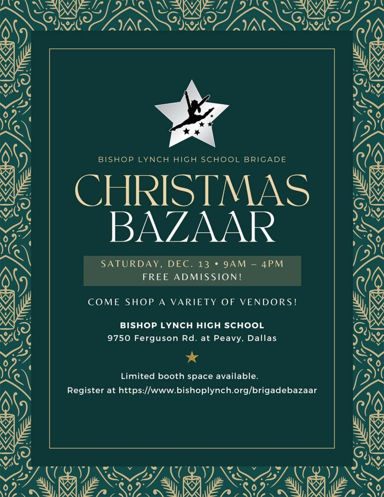 You are cordially invited to our 15th annual Christmas Bazaar! Every year, the Bishop Lynch High School Brigade hosts its Annual Christmas Bazaar at Bishop Lynch High School. Our event will take place on Saturday, December 13, from 9:00 AM to 4:00 PM. Admission is FREE!